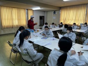 【2年農業環境科】専門技術者等講師招聘事業(干柿)農業環境科 , …2024年11月5日10月31日(木)に2年農業環境科の科目「果樹」を選択している生徒が、専門技術者等講師招聘事業で富山あんぽ柿共同加工センターを訪問しました。生徒たちは、あんぽ柿の製造工程を見学し、干し柿作りに関する講義を受けました。 「果樹」の授業であんぽ柿・干し柿作りの実習を行っているため、生徒らは専門技術者の方の講義を興味津々に聴き、また食品製造における衛生管理についても学ぶことができました。