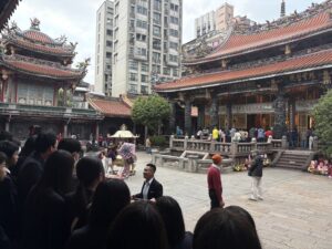 【2年農業環境科】台湾研修旅行〜1日目〜農業環境科2025年12月9日2年農業環境科は、12月8日(月)の8時に本校を出発し、同日の14時30分頃に台湾へ無事到着しました。生徒たちは全員元気な様子で安心しました。 到着後は、台北で最も古い歴史をもつ寺院「龍山寺」を訪れ、参拝や占い体験を行いました。夕食はレストラン「叙香園」にて飲茶料理をいただきました。生徒は、台湾ならではの香りや味わいのある料理に興味津々の様子でした