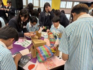 台湾研修旅行3日目の午前中は、新北市立三重高級商工職業学校(以下、三重商工)と学校交流を行いました。はじめに両校による学校紹介を行い、本校の出し物として日本のアニメクイズや折り紙体験を実施しました。その後、三重商工の生徒の皆さんに校内を案内していただき、生徒たちは台湾の高校生との交流を大いに楽しんでいました。また、台湾の文化に触れることで、異文化への理解をより深める貴重な機会となりました。