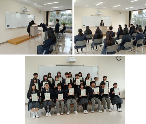生徒は、それぞれが認定書を見つめながら3年間の積み重ねた努力を思い出し、とても嬉しそうにするとともに、お互いに喜びを分かち合っていました。
