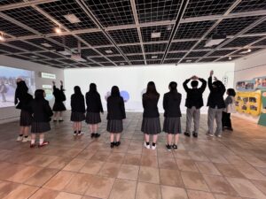 言葉や文化、歴史や宗教など、違いがあっても「食べる・遊ぶ・学ぶ・表現する」ということは誰もが同じように大切にされなければならないことを展示やガイドさんの説明から実感しました。「夢はありません」とはっきり答える子供達の姿を見て、戦争の残酷さ、私達が今過ごせている生活の尊さを改めて考えさせられました。決して良いとは言えない現在の世界情勢に対して、何を考えて、どう行動したら良いのか深く考える良いきっかけとなりました。ユニセフの活動は多くの人の寄付から成り立っていることを知り、自分たちができることとして、募金や今回知ったユニセフのことを自分たちの周囲の人に伝えることをこれから少しでもできればと思います。