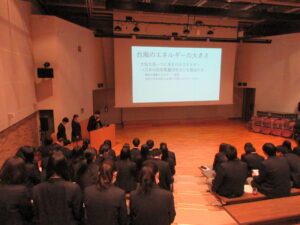 3月23日、2学年普通科・国際科は、とやま地球学の代表班による発表会を東雲ホールにて実施しました。